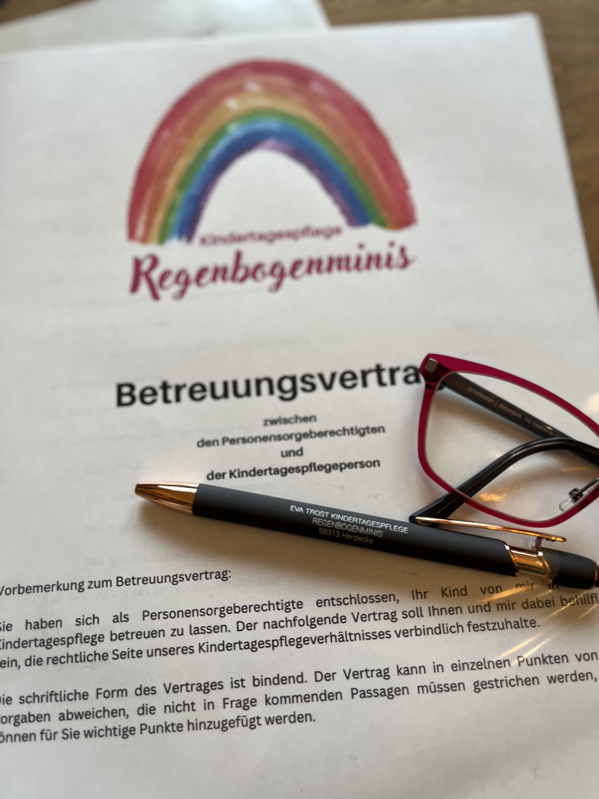 4. ist danach für alle klar: das passt und wir gehören einfach zusammen, unterzeichnen wir gemeinsam den Regenbogenminis - Betreuungsvertrag und melden dich beim Jugendamt an